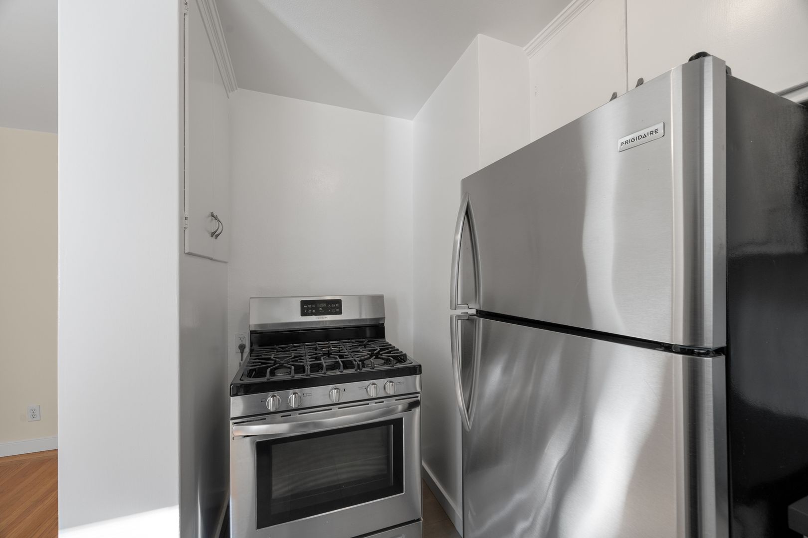 • Kitchen with stainless steel stove and refrigerator