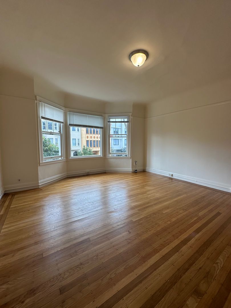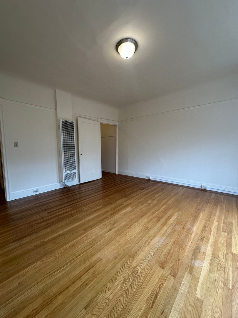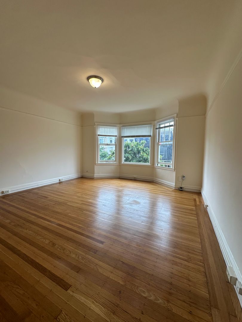 The apartment boasts hardwood floors throughout, a spacious studio space, large walk-in-closet, refreshed eat-in kitchen w/ gas stove and high ceilings. This apartment radiates San Francisco Charm! Schedule a tour today!!