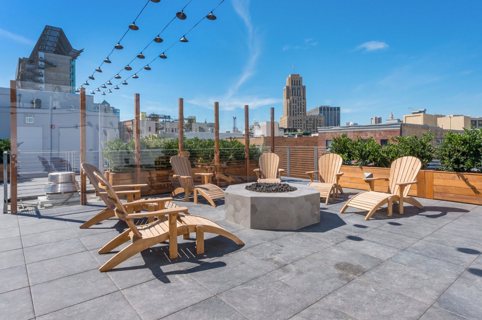 • Rooftop deck with a fire pit