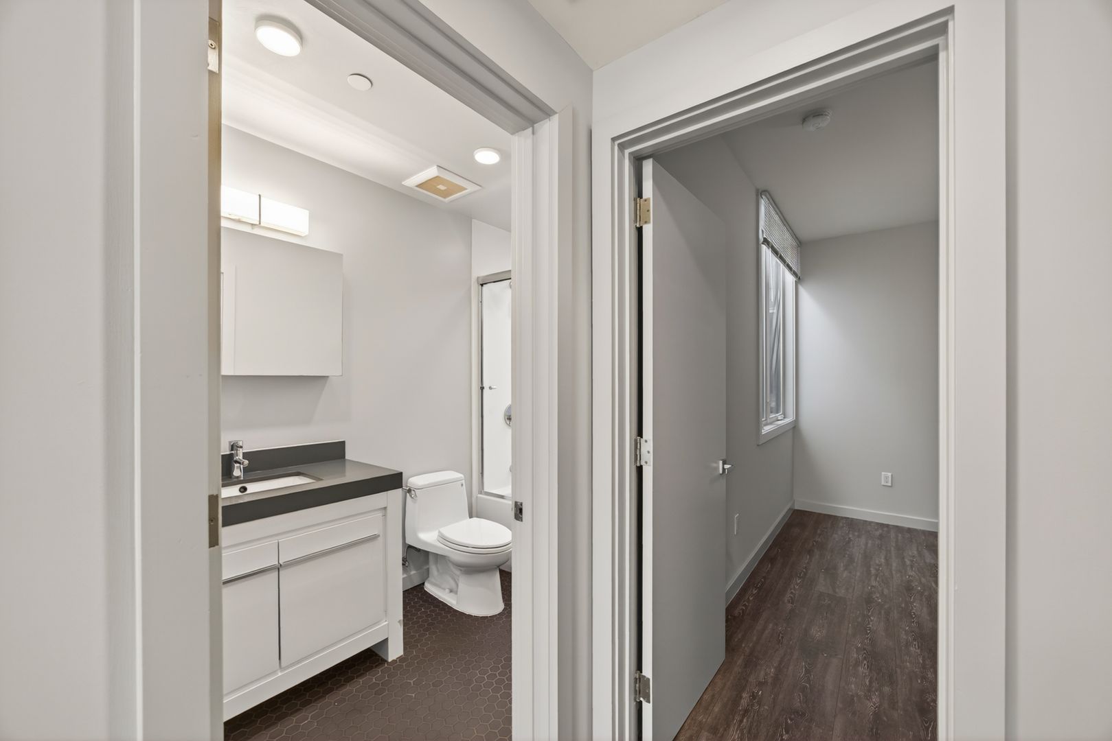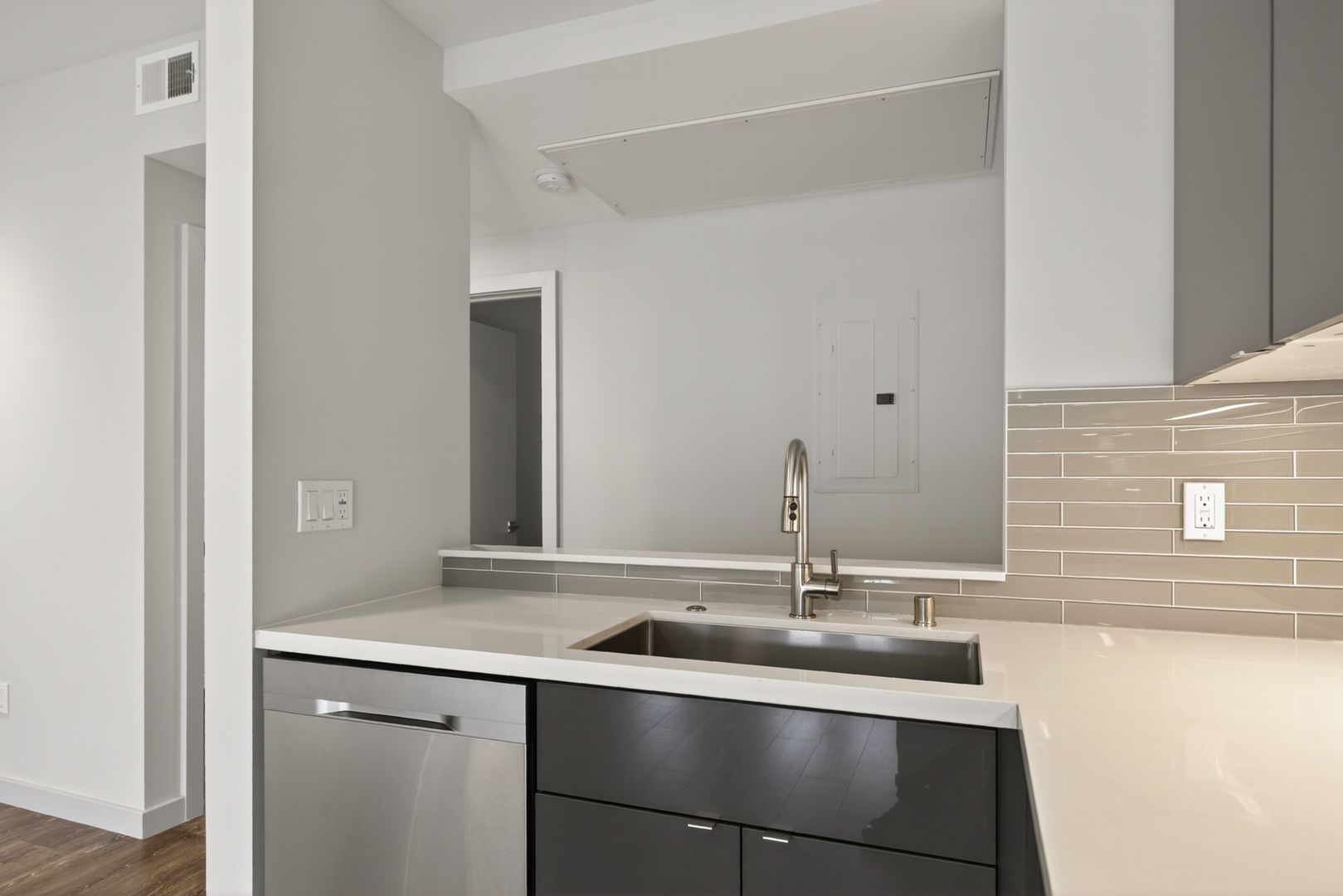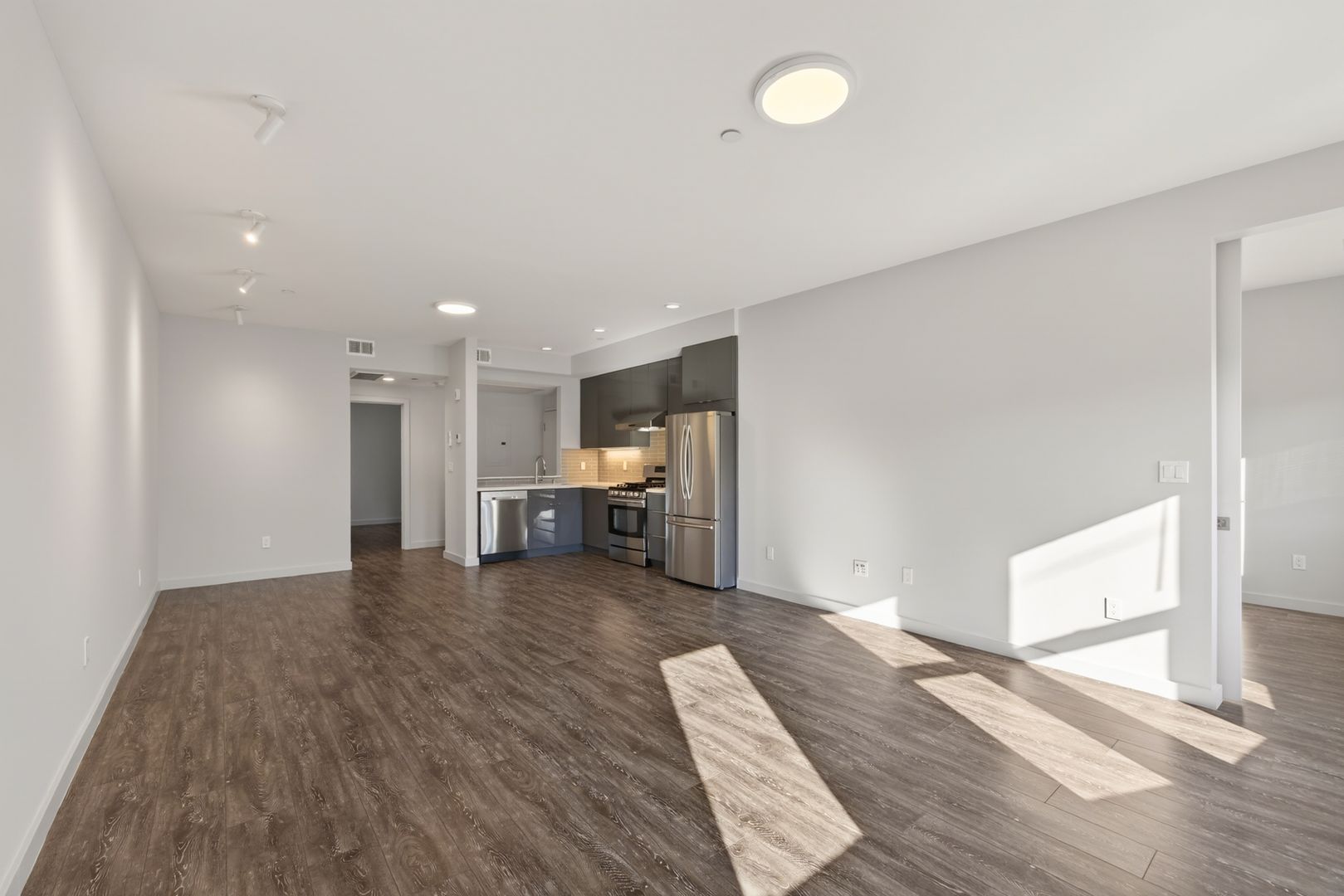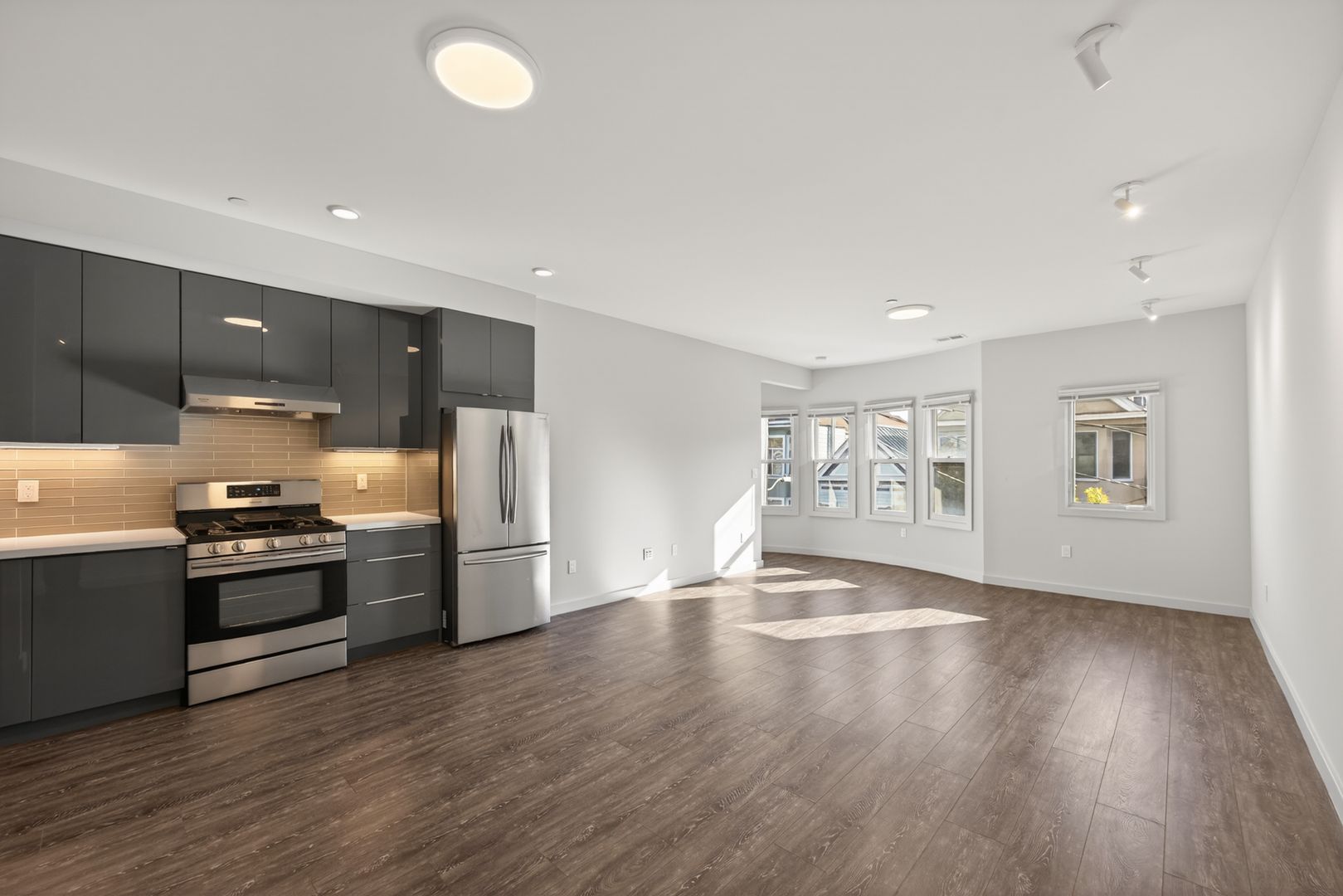 Located in the Noe Valley neighborhood of San Francisco, this renovated apartment sits directly on 24th Street, providing immediate access to neighborhood retail, grocery stores, cafés, and public transit options. The location offers close proximity to Noe Valley Town Square, Whole Foods Market, and multiple Muni bus lines, and is part of a mixed-use corridor with residential and commercial buildings. The unit includes a modern kitchen with stainless steel appliances along with glossy upper and lower cabinetry, tile backsplash, recessed lighting, and wood-style flooring throughout the living area. The apartment is located in an extremely walkable area and features large windows providing natural light.