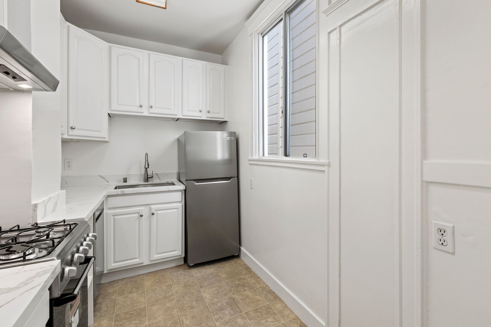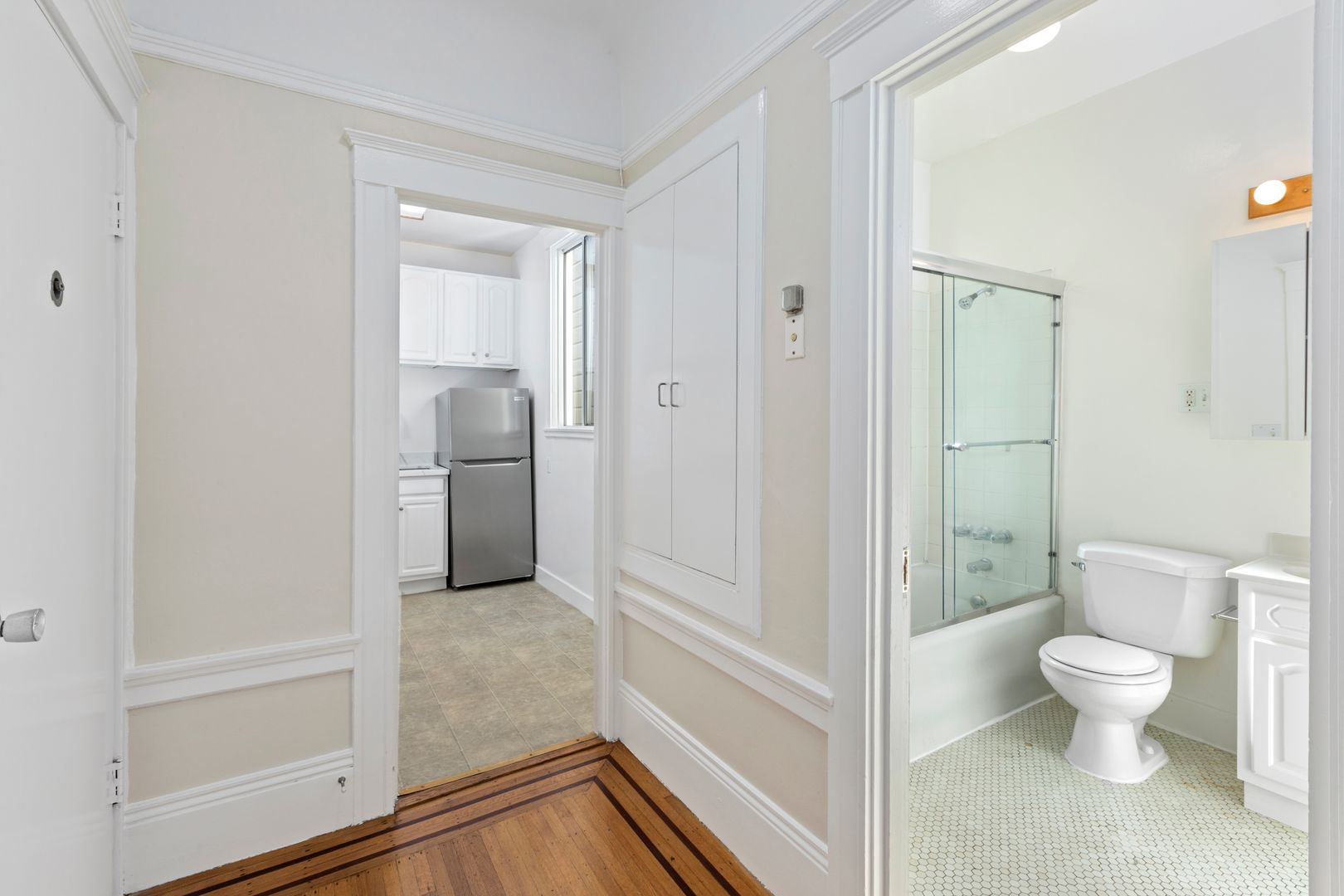 The apartment features gleaming hardwood floors throughout and a bay window offering beautiful city views and ample natural light. Inside you’ll find a newly updated kitchen — making this unit move-in ready. Light-filled and full of charm, this is a must-see apartment. Schedule a tour today!